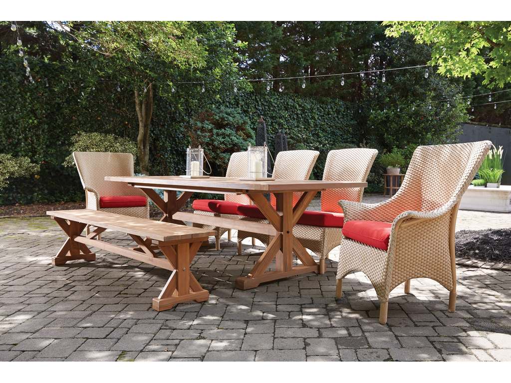 Product Description: Lloyd Flanders 286100 Teak 99 Inch Rectangular Trestle Base Dining Table - Our premium teak wood is ideal for outdoor furniture because of its high oil content, inherent strength, and tight grain. In the elements, teak will age over time and can mature to a beautiful, silvery finish. We only use sustainably harvested FSC-certified teak in our products.