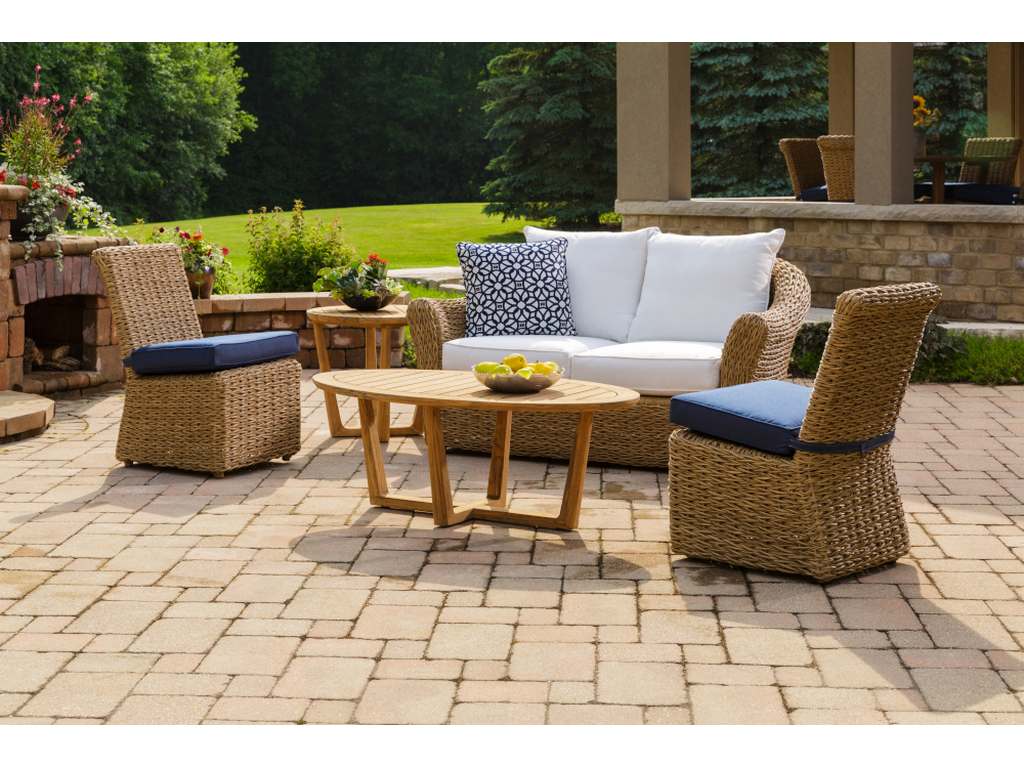 Product Description: Lloyd Flanders 286344 Teak 48 Inch Oval Sled Base Cocktail Table - Our premium teak wood is ideal for outdoor furniture because of its high oil content, inherent strength, and tight grain. In the elements, teak will age over time and can mature to a beautiful, silvery finish. We only use sustainably harvested FSC-certified teak in our products.