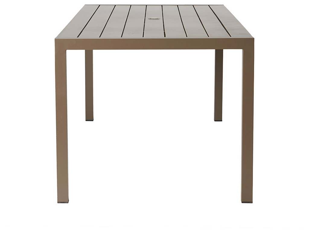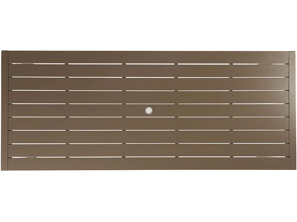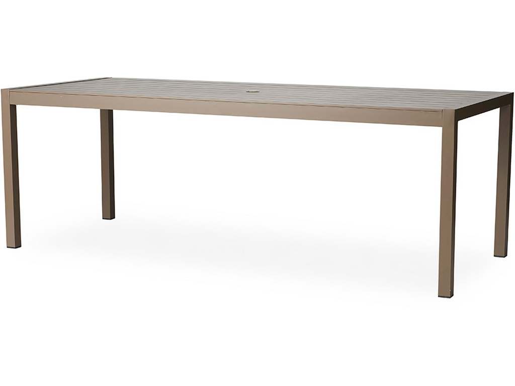 Product Description: Lloyd Flanders 475086 Milan 87 Inch Rectangular Umbrella Dining Table - The Milan collection's sled base and sleek lines add a sense of modernity and levity to any outdoor space. The soft greige finish adds a textured, earthy attitude that creates a welcoming vibe.