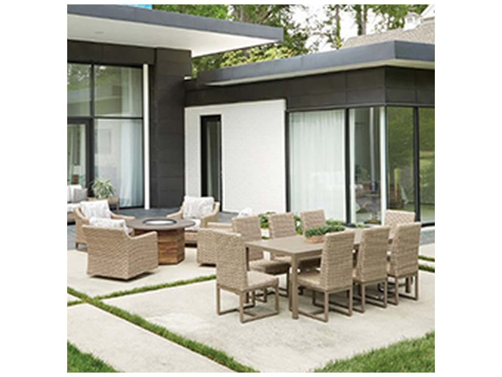 Collection Description: The Milan collection's sled base and sleek lines add a sense of modernity and levity to any outdoor space. The soft greige finish adds a textured, earthy attitude that creates a welcoming vibe.