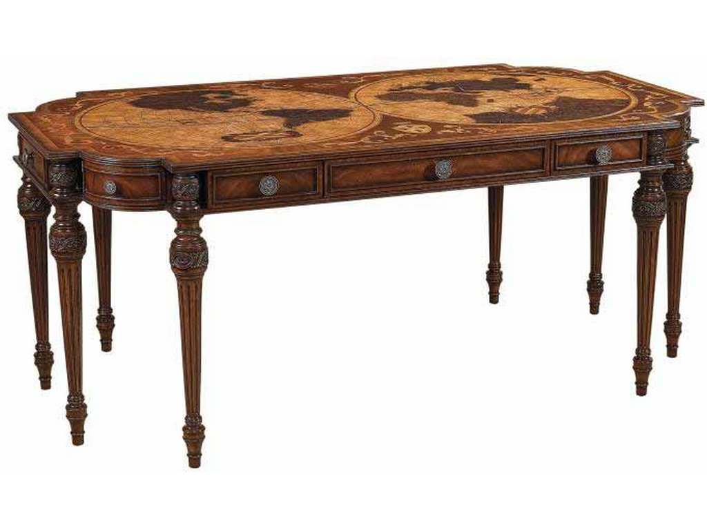 Product Description: Maitland Smith 8109-55 Map Writing Desk - Aged Regency Finished Desk, Intricate Inlaid Marquetry Top in Various Veneers