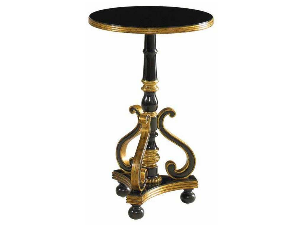 Product Description: Maitland Smith 8132-30 Ivan Occasional Table - Ebony Finished Round Occasional Table with Gold Gilded Accents