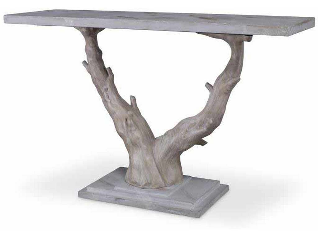 Product Description: Maitland Smith 8150-34 Nature Console Table - Aged Oak Finished Cast Resin Nature Console Table with Dessert Tan Scagliola Top