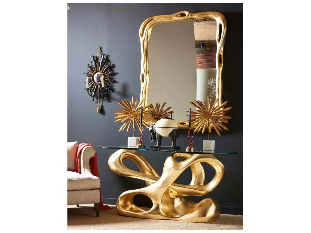 Product Description: Maitland Smith 8167-34 Biomorphic Console Table - Cast Resin Gold Leaf Biomorphic Console Table with Glass Top