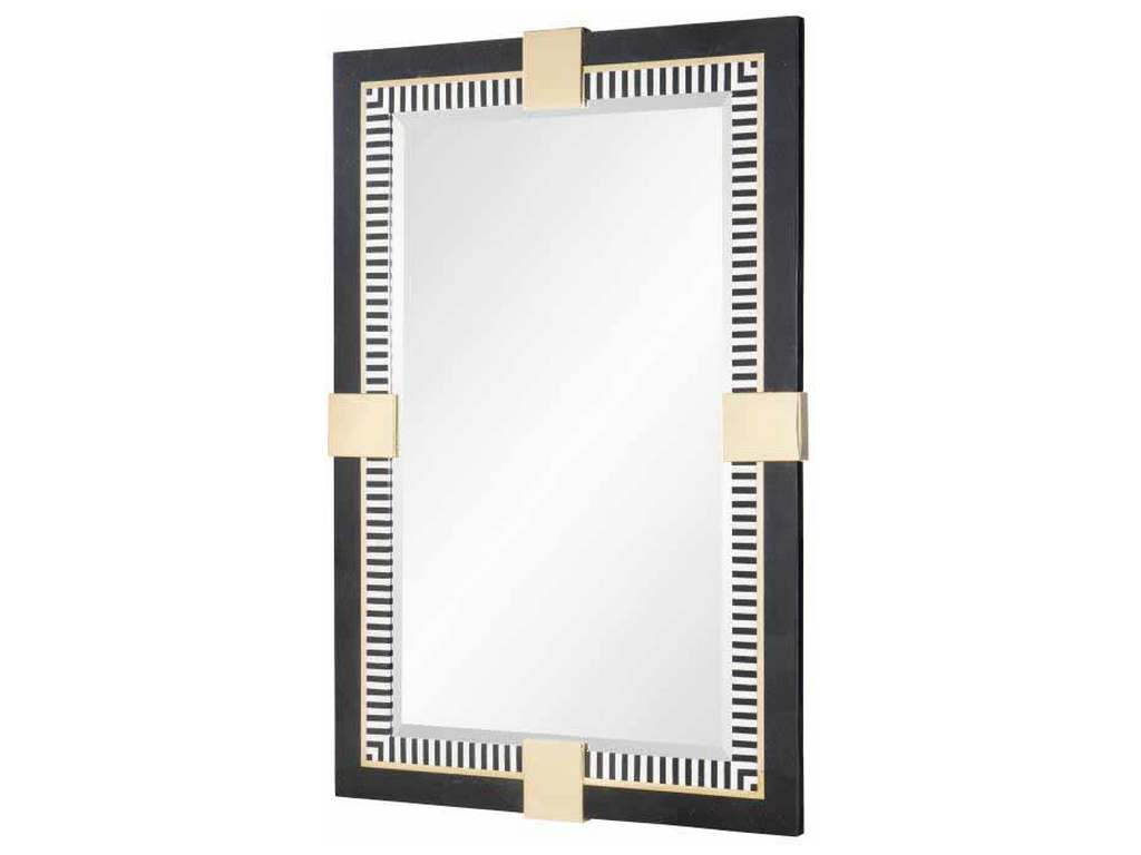 Product Description: Maitland Smith 8319-28 Spectator Mirror - Art deco black marble mirror with inlaid stone and brass accents