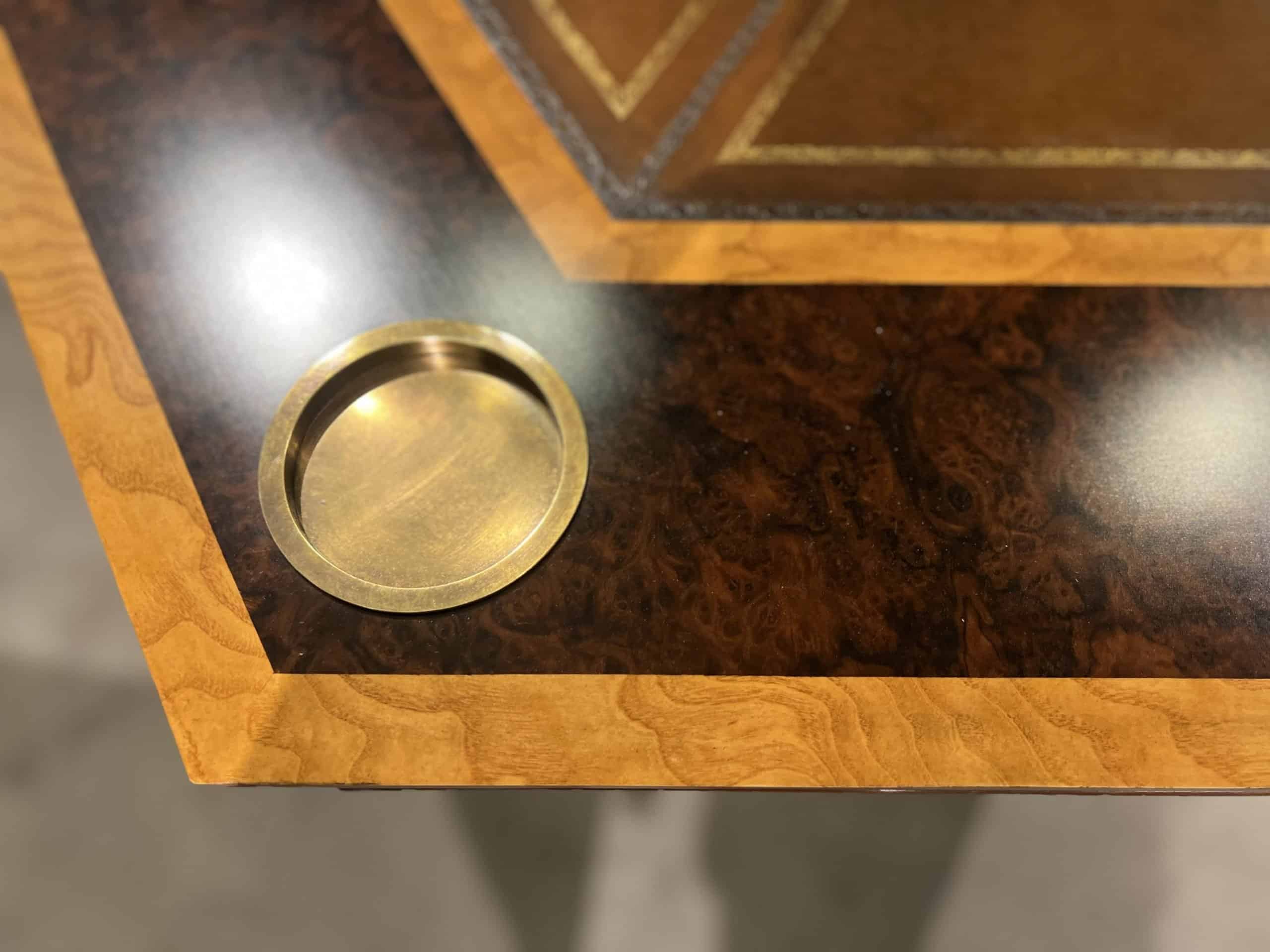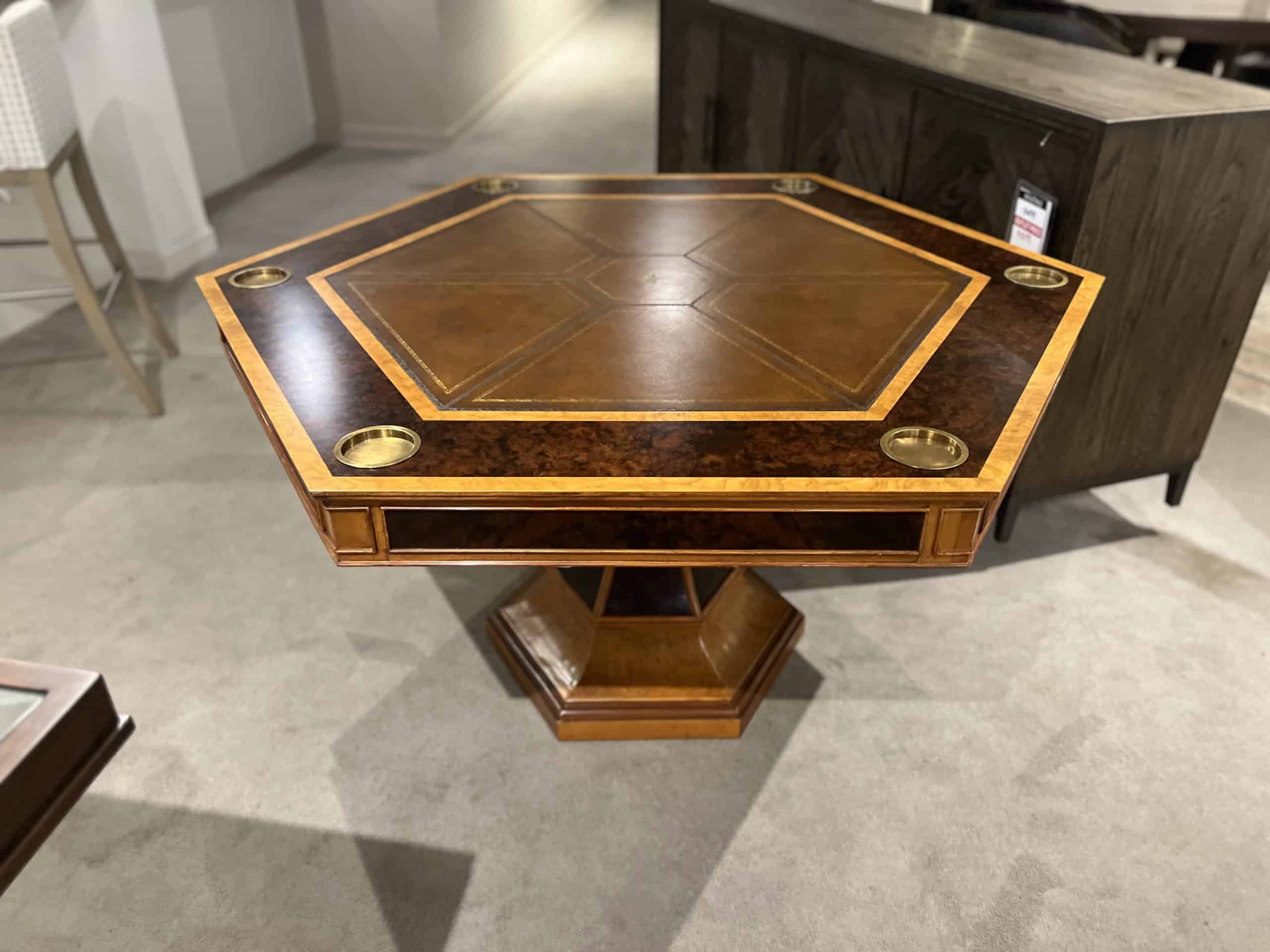 The Maitland-Smith Furniture Blade Game Table (SKU: 89-0903/40,50,60) is available at Factory Outlets by Hickory Park in Hickory, North Carolina.