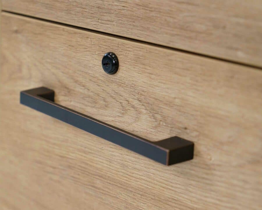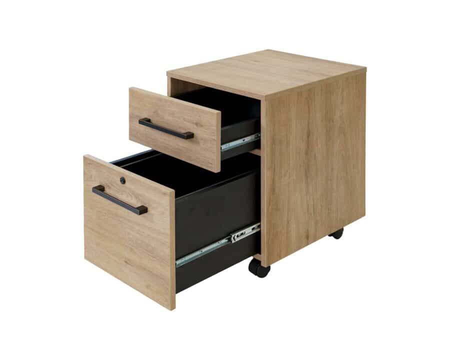 Product Description: Martin IMMN202M Rolling File - A practical and mobile file storage solution for home offices or workspaces, this rolling file cabinet features a locking letter/file drawer to keep hanging documents organized and secure, plus an additional utility drawer for extra storage. Built with heavy‑duty ball‑bearing drawer slides for smooth, quiet operation and four casters for easy repositioning, it’s finished on all sides so it can stand alone or fit under a desk. Constructed from durable thermal‑fused laminate, it’s designed for long‑lasting use in any room.