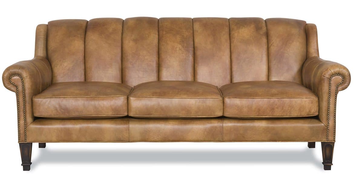 Product Description: McKinley Leather 2554 Remus Sofa - The Remus Channel-Back Sofa, named for America’s foremost bootlegger, is upholstered in a soft leather with great vintage appeal. Cushions are Royal Down-filled; the channel back maximizes the down’s comfort.