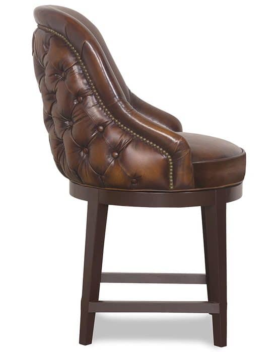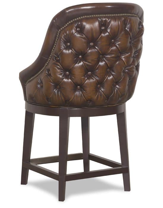 Product Description: McKinley Leather 26-CH Bootlegger Counter Height Stool - Bootlegger Bar and Counter Stool features a combined treatment of buttons on the inside back and small diamond tufting on the outside back to add visual interest from anywhere in the room. Hand-burnishing in the Rolfe Tobacco Leaf leather shown here adds depth and time-cherished character.