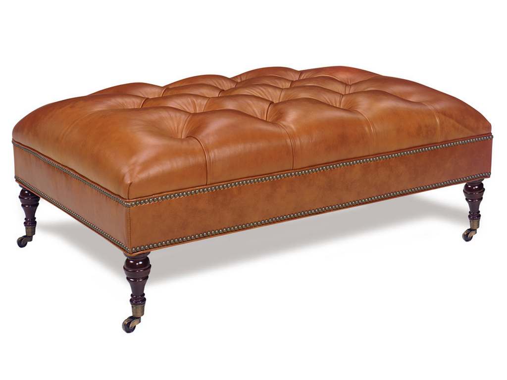 Product Description: McKinley Leather 30-B Bench - Finally - rectangular tufted bench. Custom building these benches for several years and decided to offer a standard size version. Turned legs can be finished in any stain and are built into the frame for extra stability. Ferrule cup casters are available in either an antique brass or pewter finish. Omega is a smooth garment weight leather that tufts superbly, but any leather can be used on every item in our line since we build every piece of furniture under one roof. Available in any of the McKinley leathers or fabrics with numerous wood finishes and cushion options. 8-way hand tied and made to order in Hickory, NC.