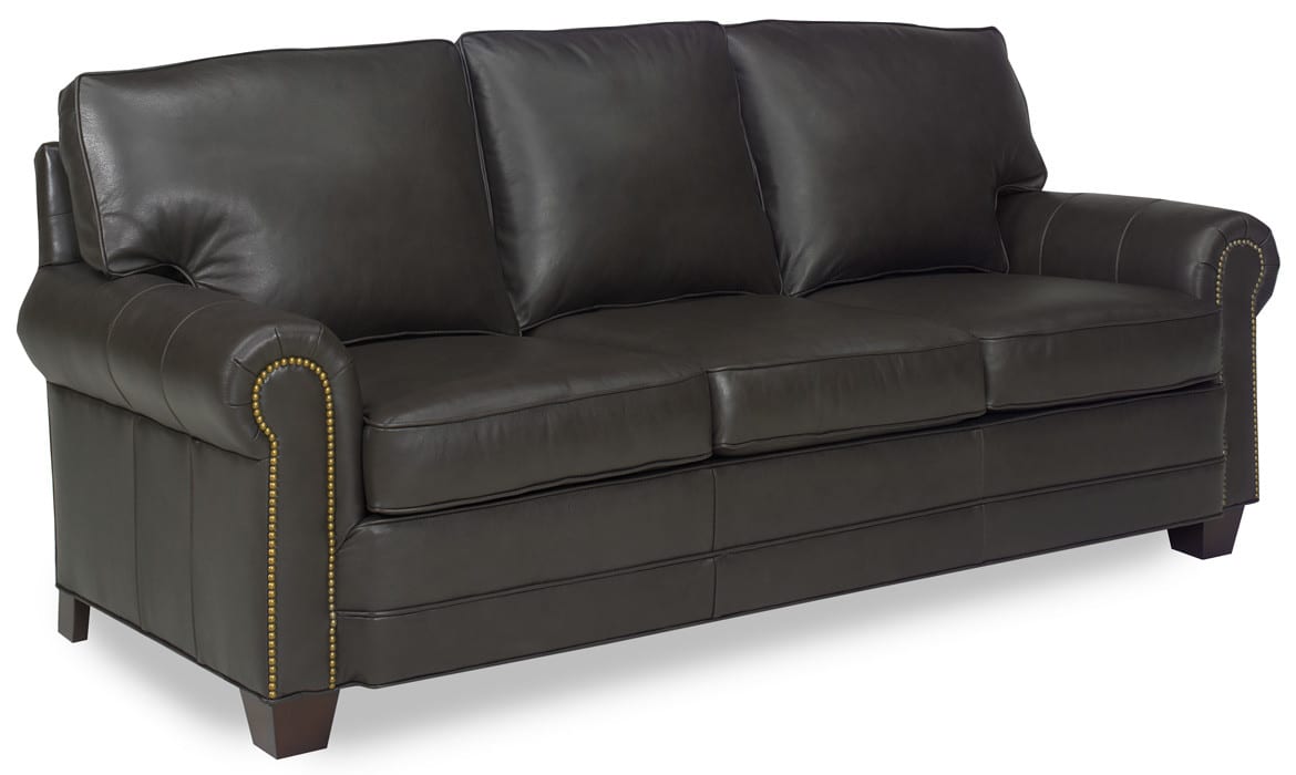 Product Description: McKinley Leather 5199 Jackson Sleep Sofa - The Jackson Sleep Sofa is shown in Mohican Seal (AP) leather. Jackson is an updated classic with rolled arms, pyramid legs and nailhead trim in French Natural finish that has been individually hammered. Jackson offers a lot of sofa in a relatively small footprint!