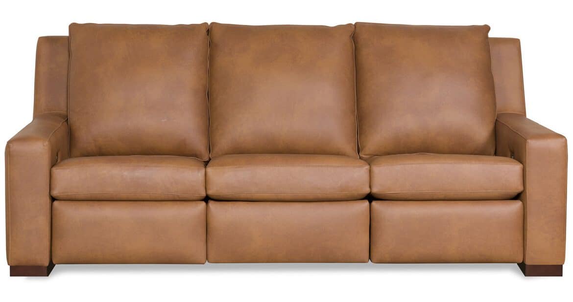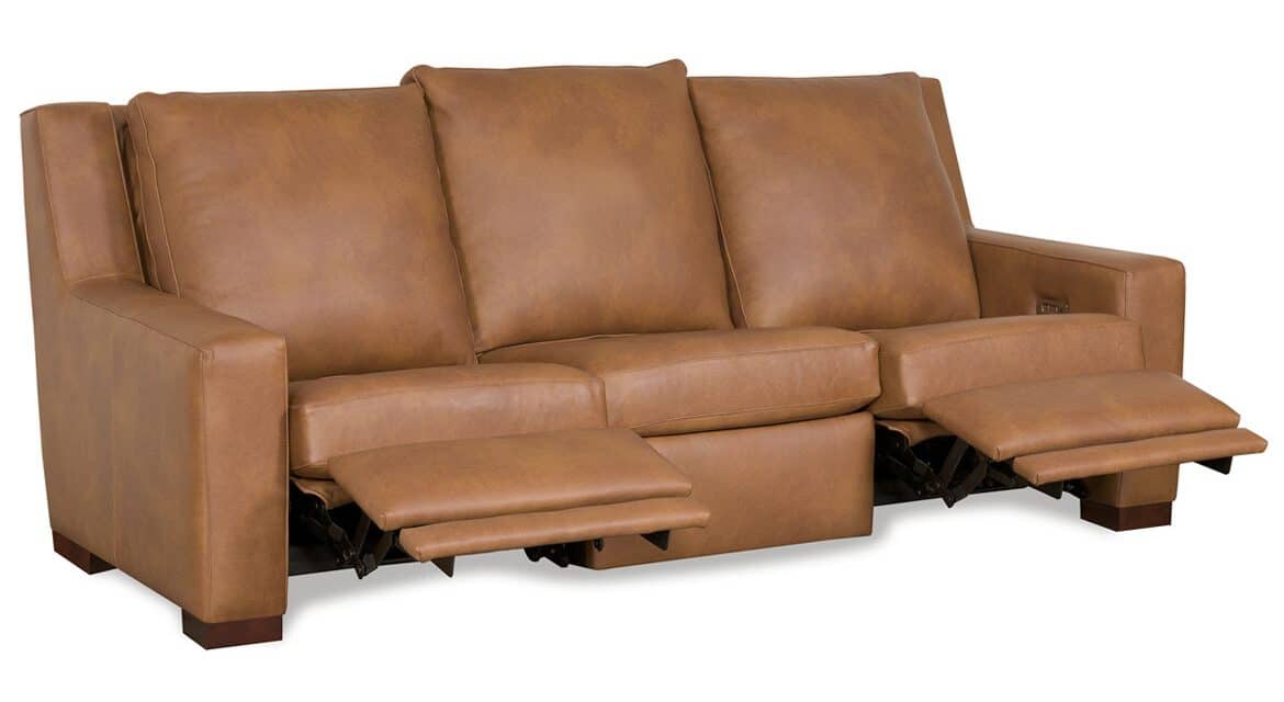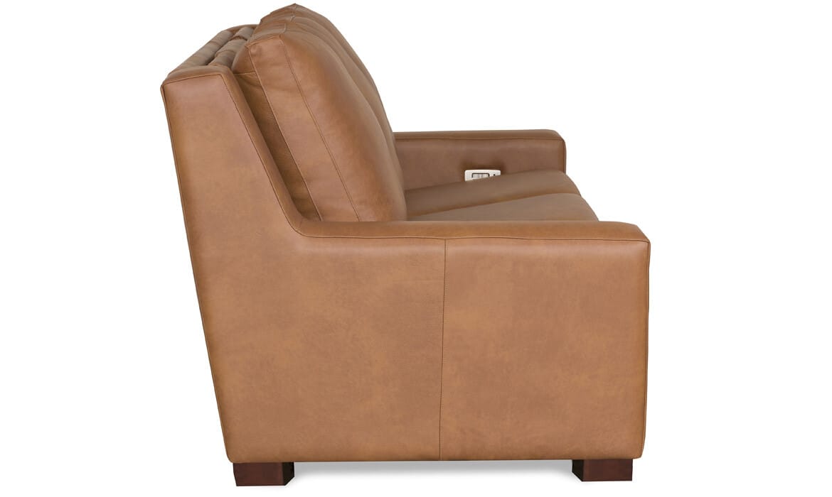 Product Description: McKinley Leather 7134 Groves Zero Wall Reclining Sofa - Groves styling features a track arm and wing perfect for the Man Cave OR your family room. A beautiful combination of immaculate styling with unexpected comfort. Zero Wall Reclining Sofa has a power mechanism and articulating headrest, while the dual switch also has a USB charging port. The back of this sofa is solid, so it doesn't look like the reclining sofas of old. You can float it in a room or flat against the wall. Artisan crafted in North Carolina.