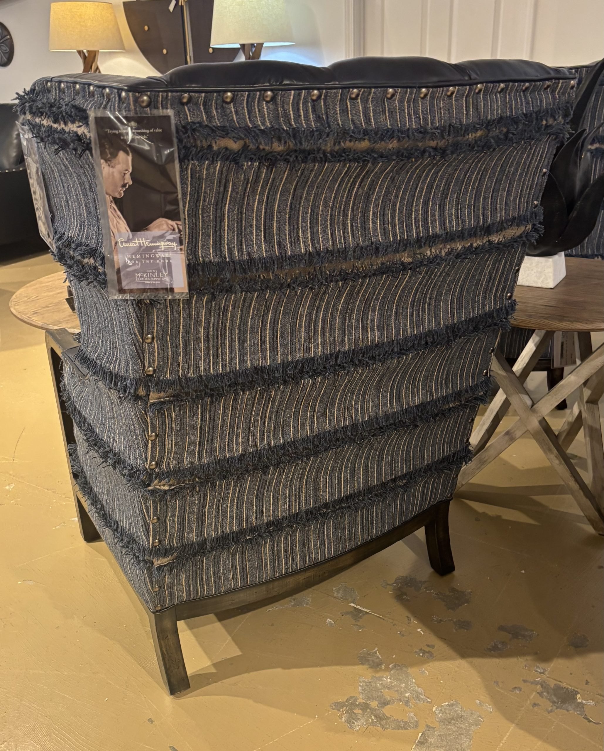 The McKinley Leather Furniture Habani Smoking Chair (SKU: 8101) is available at the Hickory Park Clearance Center in Hickory, North Carolina.