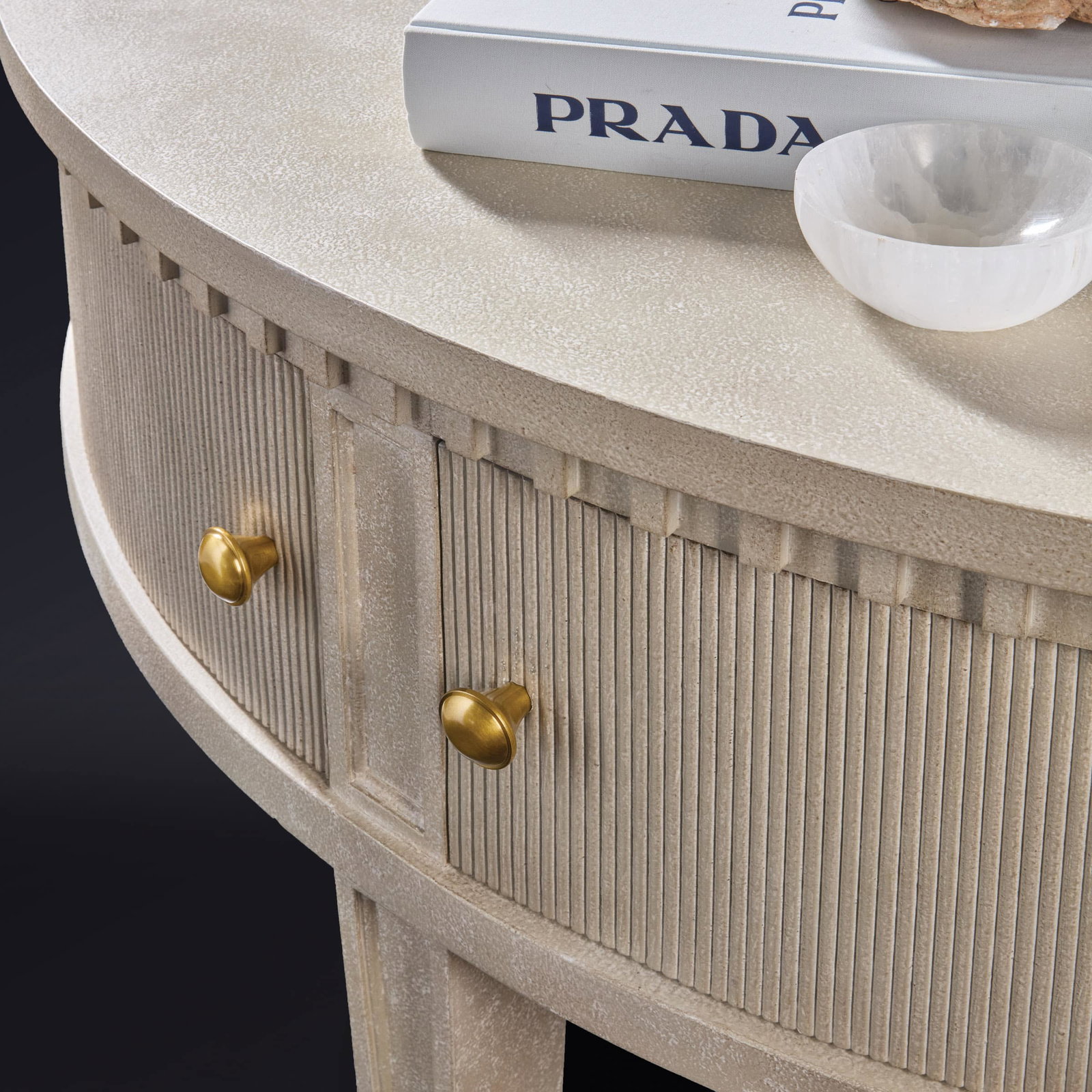 Product Description: Modern History MH1286F01 Large Gustavian Half Round Cabinet - An elegant, historically inspired storage piece that captures the understated luxury of 18th-century Swedish design. It is a larger-scale version of the classic Gustavian demilune, making it a substantial anchor for a foyer, dining room, or hallway.