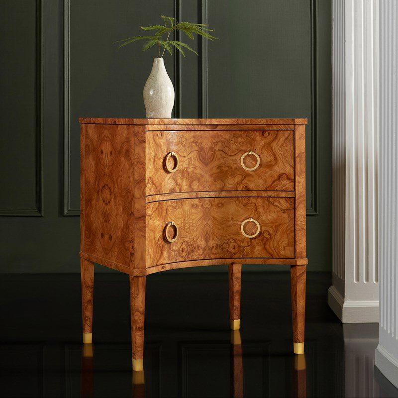 Modern History MH477F02 Two Drawer Concave Cabinet Olive Ashe Burl