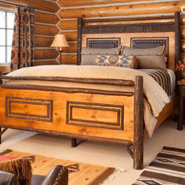 Product Description: Old Hickory OF313-K Old Faithful Panel Bed - King - Old Faithful Panel Beds - exquisite, bold, solid and strong, a style of living that embodies wholesomeness and natural living. King size bed has 2 upholstered headboards panels. Price and picture shown is for regular bark, rustic finish and oak veneer with G10 Fabric panel.