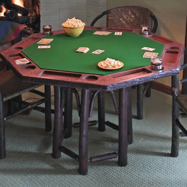Product Description: Old Hickory TB943G Hoop Game Table - Transform your dining area to recreation area with the Hoop Game Table. The versatile nature of this piece will delight your senses with inspiration and style. Price and picture shown is for regular bark, rustic finish and oak veneer. Reversible Game/Dining Top is standard with Bottle Green Felt.