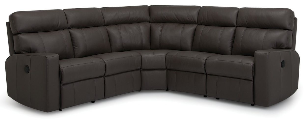 Product Description: Palliser Furniture 41049 Oakwood Sectional - Compact and charming, the Oakwood collection features a discreet reclining function that is a great option for smaller spaces. With sleek track arms and an integrated headrest, the Oakwood collection can easily entertain a group or accommodate a relaxing family movie night. The collection features a box border chaise and top-stitching details that punctuate the frame. A built-in headrest supports the head when seated or in the fully reclined position and the back features a T-cushion that extends over the track arm. The Oakwood will be everyone's favourite lounging spot and it's the perfect addition to any living space.