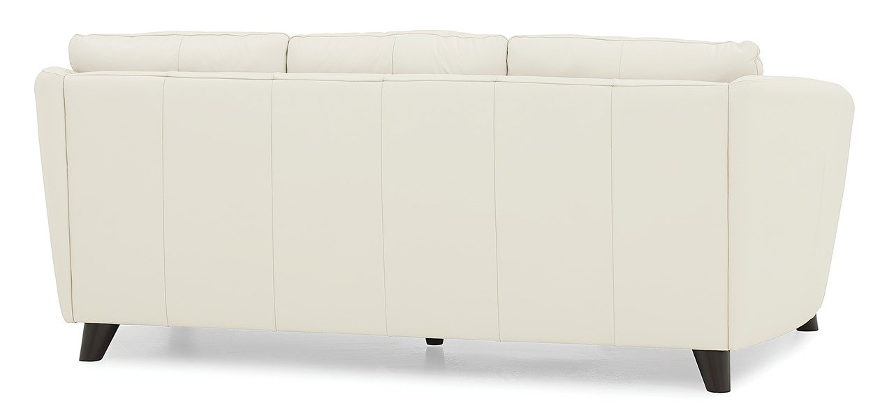 Product Description: Palliser Furniture 77427-01 Alula Sofa - Like the graceful tulip that inspired its design, the Alula brings a flowing and organic feel to any space. Flared, subtly rounded arms welcome you into a seat that's soft and plush, perched atop tapered stems available in an espresso wood or aluminum metal finish.