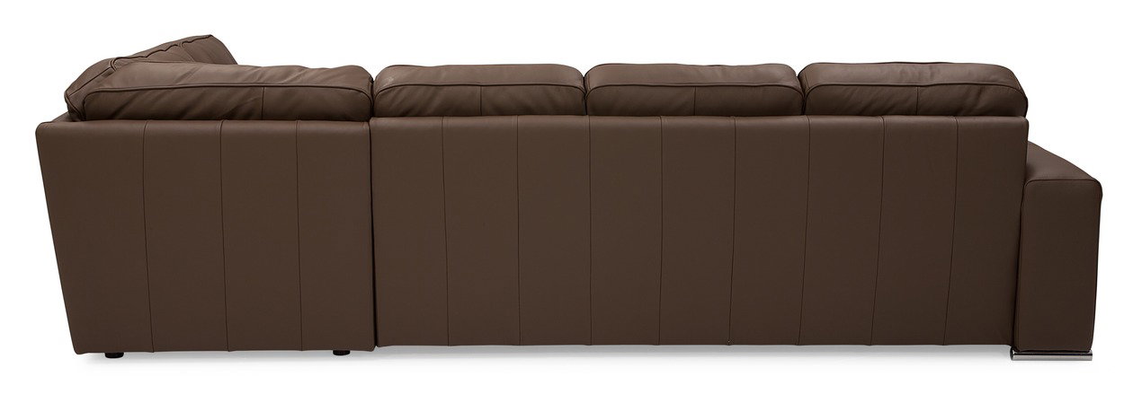 Product Description: Palliser Furniture 77615 Pachuca Sectional - The contemporary Pachuca collection is ideally suited for small-scale living. The Pachuca's wide arms accent its geometric form. Padded for extra comfort, the arms are finished with a piping detail that outline their silhouette. Subtle pulls on the seat and back, along with a sleek, low-profile frame height create a modern aesthetic to this collection. The Pachuca's modern styling is complimented by soft, semi-attached blown-fibre back cushions that offer plush comfort for relaxation, while the high resilient seat foam cushion provides premium support without sacrificing softness. The Pachuca collection is the perfect addition to a small-scale condo or urban loft.