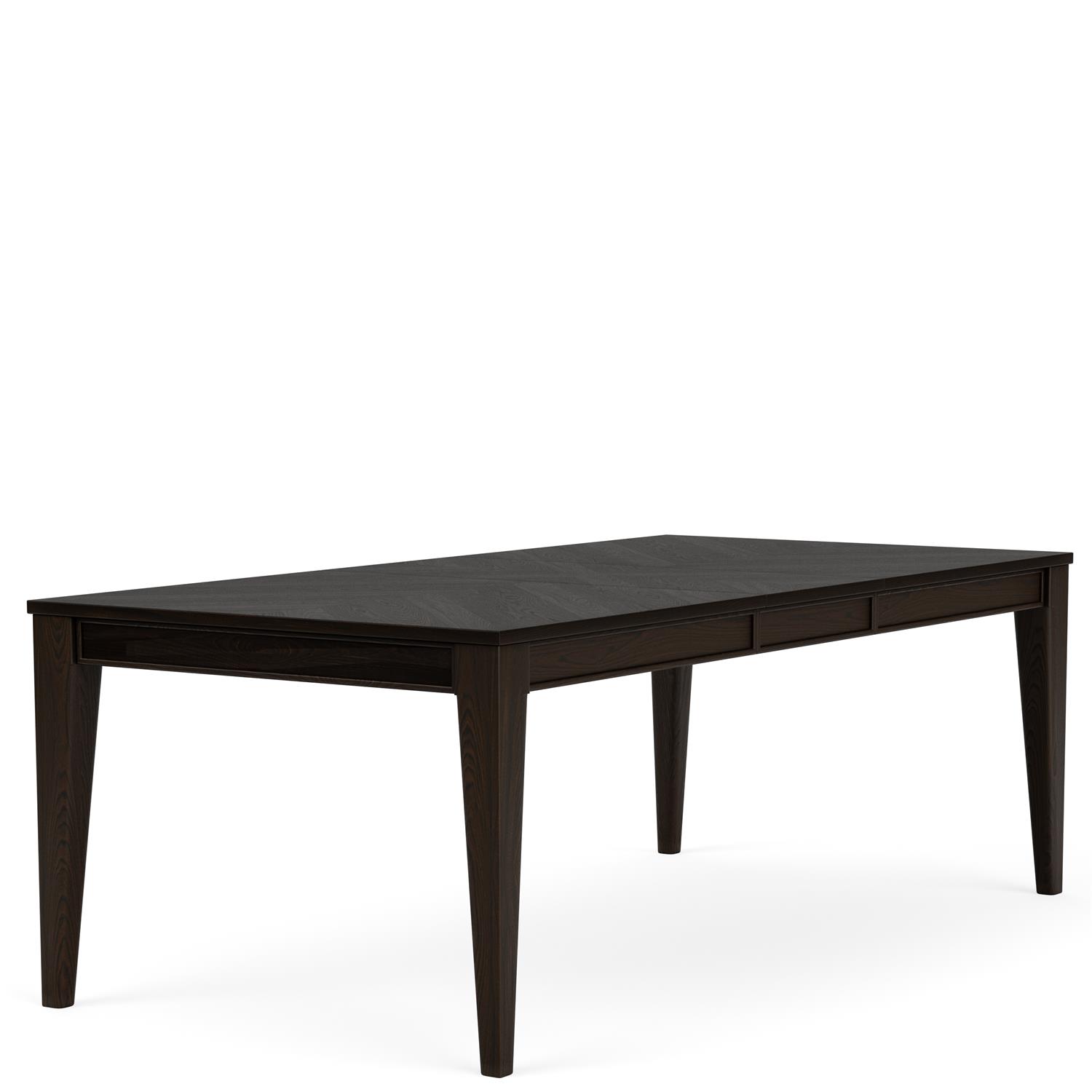 Product Description: Riverside Furniture 27150 Lydia Rectangular Dining Table - Constructed of select hardwoods and Oak veneer. Clean turned radius tapered legs. Top has decorative V match veneer pattern. 68" x 42" top extends to 86" x 42" with one 18" leaf added.