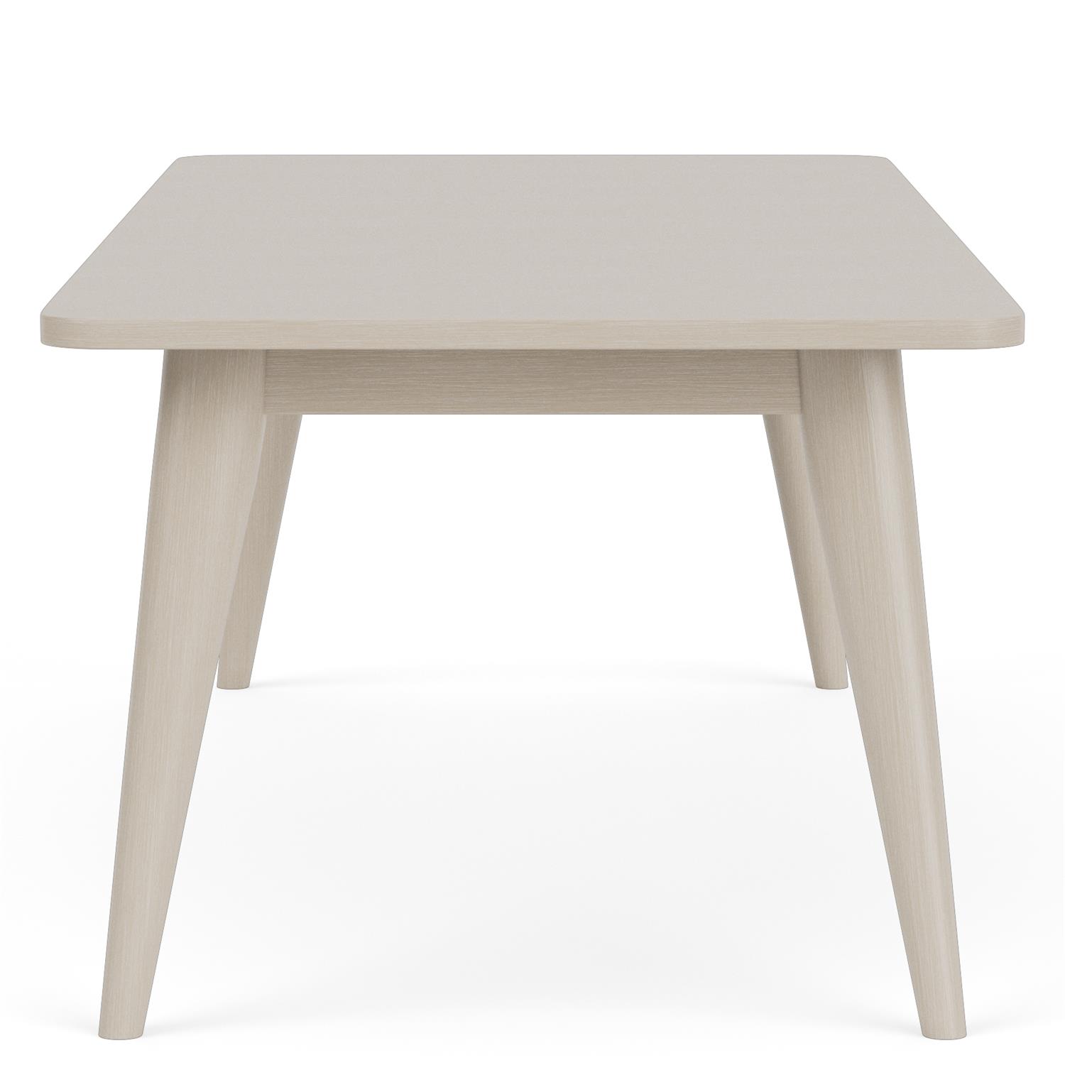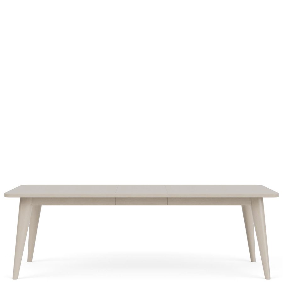 Product Description: Riverside Furniture 37550 Laguna Rectangular Dining Table - Constructed of select hardwoods and random oak veneer. Table Top extends from 76-94" x 40" with one 18" leaf. Multistep blonde finish for a casual vibe. Sleek full round tapered legs that are tapered out.