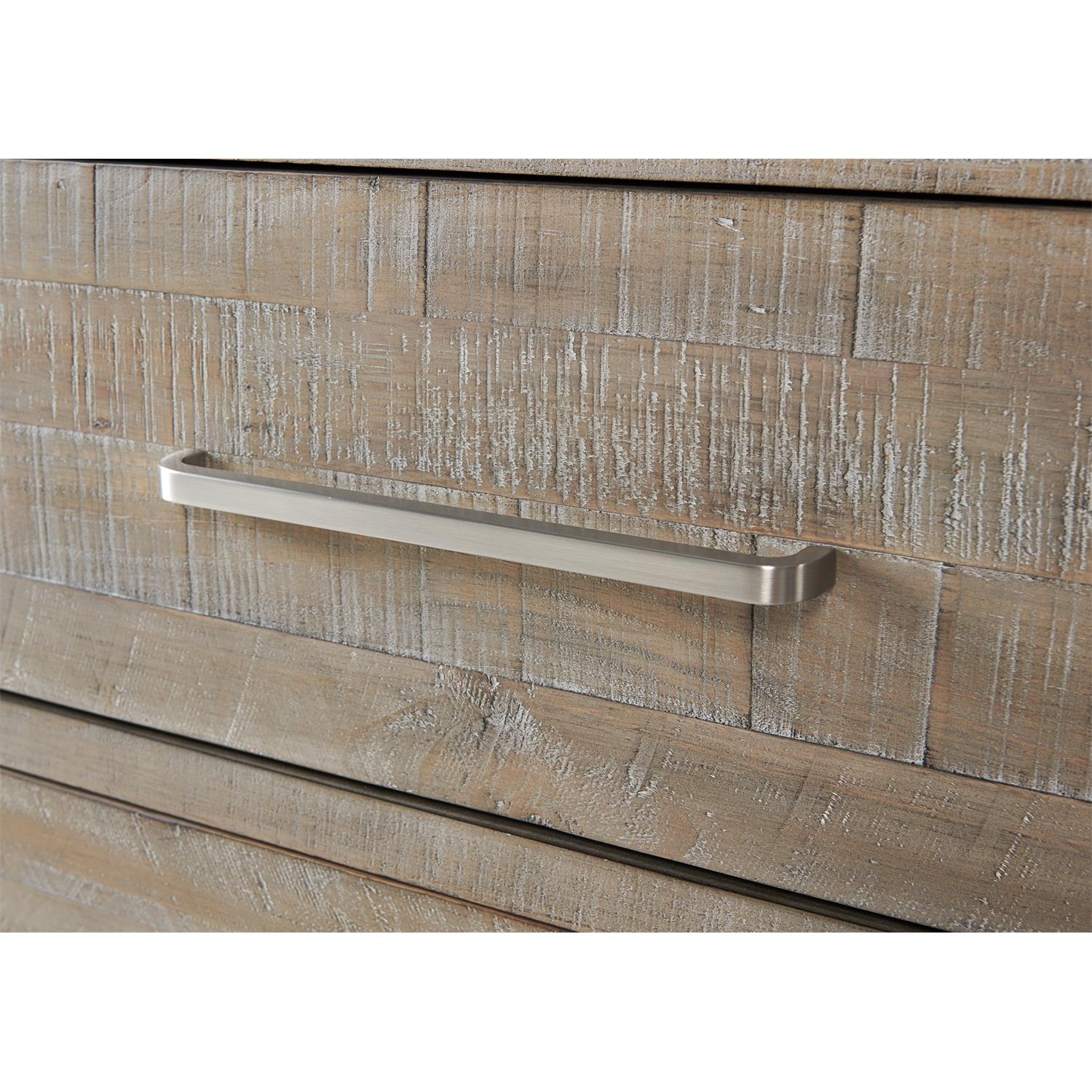 The Intrigue collection embodies rustic sophistication through it's tactile and organic styling. Select pieces feature a high-low planking effect for dimensional appeal, complemented by rustic distressing on solid Pine. The Hazelwood finish, blending taupe and gray earth tones, enhances the overall organic, textural allure.