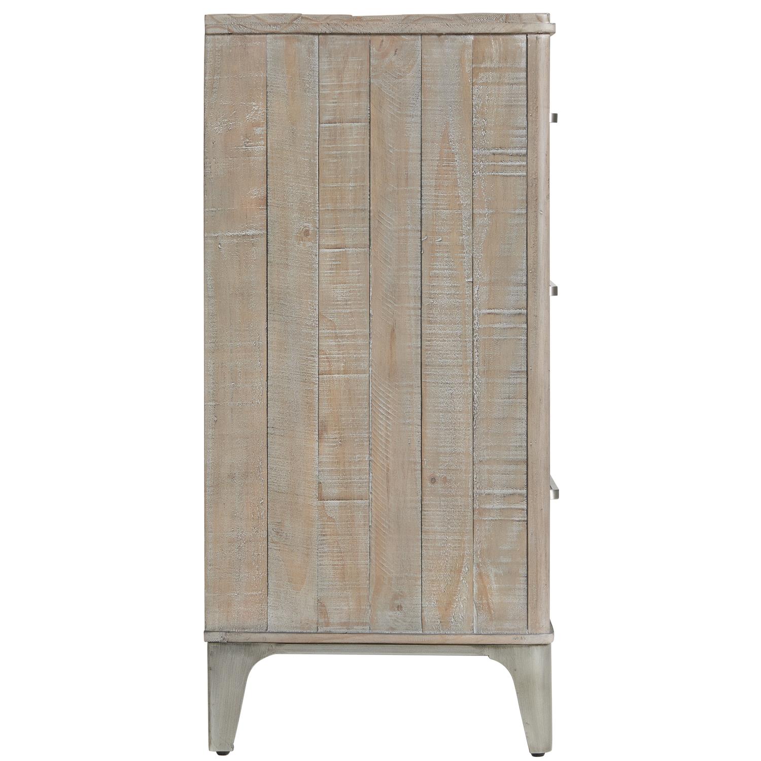 Product Description: Riverside Furniture 39390 Intrigue Six Drawer Dresser - Constructed of solid pine with a metal base. All drawers have dovetail joinery and ball bearing extension guides. Bottom drawers have a Cedar veneer bottom, all others are felt-lined. Dust panel under bottom drawer. Tip restraining hardware.