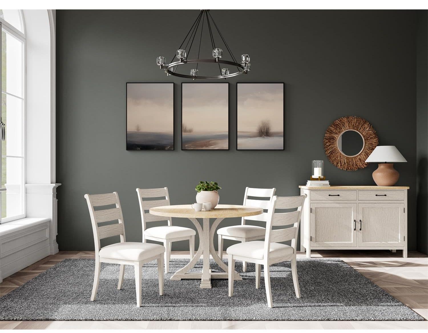 Collection Description: Blending traditional and natural simplicity, the Glenndale collection brings a breezy ambiance to any room. Its classic designs and light-colored finish ensure it will be a lasting addition to your space. It elegantly blends modern design with cottage charm, creating an inviting experience for any home.