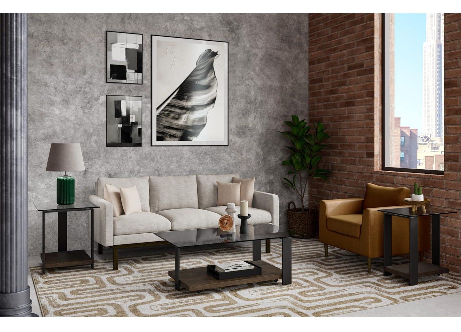 The Cortland occasional table collection is vibrant and eclectic, drawing inspiration from contemporary urban living. Characterized by clean lines and a distinctive "T" shaped metal frame, this collection seamlessly marries modern aesthetics with functionality.