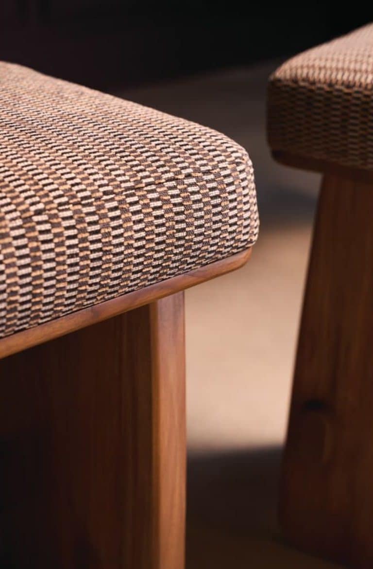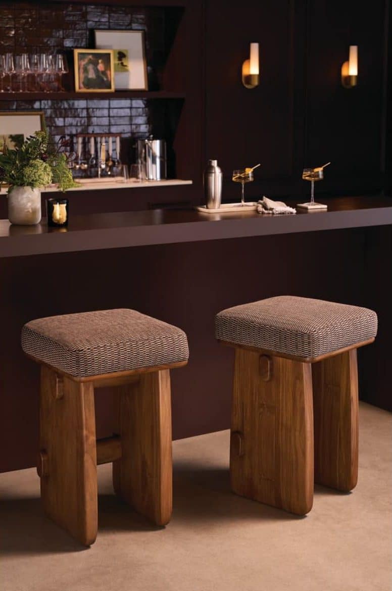 Product Description: Rowe R100-541-RC Nova Barstool - Elevating the art of casual seating, the Nova Barstool masterfully balances organic warmth with architectural precision. The sustainably-sourced solid teak base, with its lightly stained finish, creates a striking silhouette through thoughtfully positioned supports and clean-lined geometry, while the upholstered cushion adds a layer of sophisticated comfort and visual intrigue. This expertly crafted piece embodies the intersection of form and function, with mortise-and-tenon joinery ensuring lasting durability beneath its refined exterior. Whether positioned at a kitchen island or home bar, the Nova's honest construction and elegant proportions make it a versatile anchor piece that effortlessly bridges modern and transitional design aesthetics, promising to enhance any carefully curated space with its understated luxury.