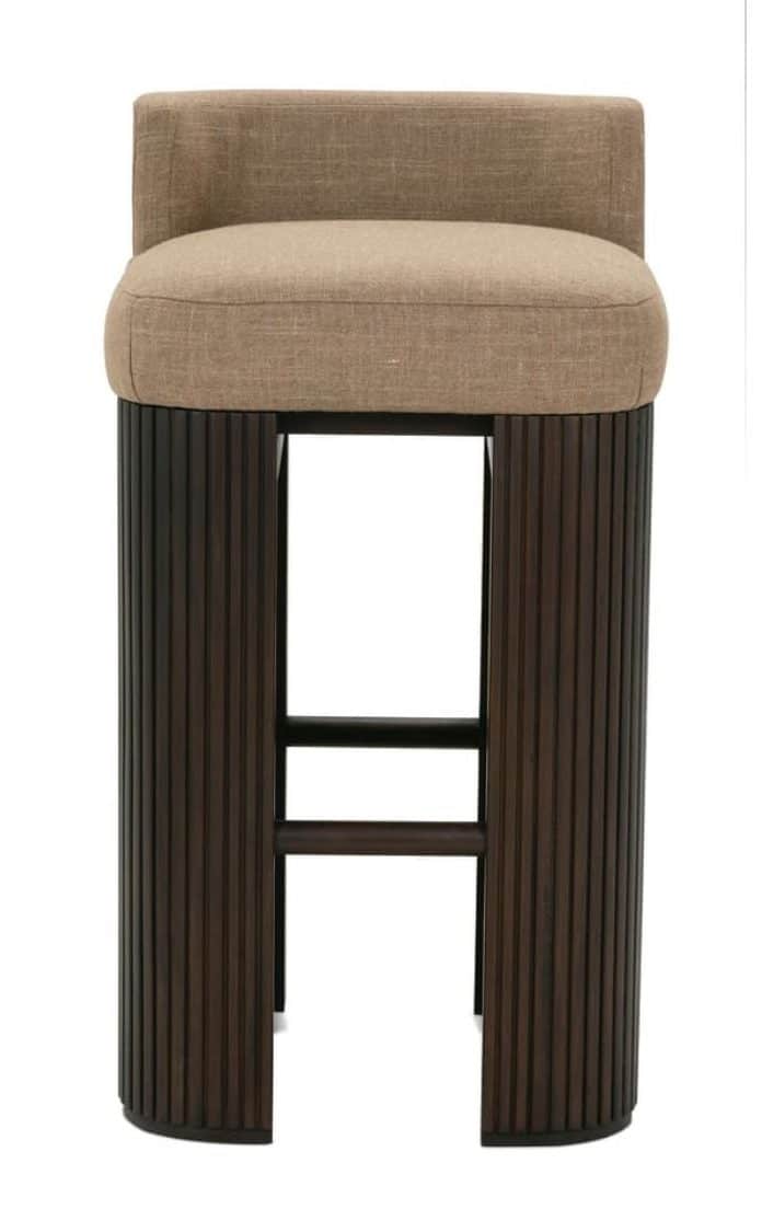 Product Description: Rowe R131-540 Kindred Barstool with Back - Godiva - The Kindred Barstool masterfully merges architectural elegance with modern comfort, featuring a striking reeded base design that commands attention while remaining wonderfully approachable. Its sophisticated silhouette showcases a harmonious blend of textures - a plush upholstered seat and backrest floating atop a dramatically fluted base available in either warm Godiva or light Sesame finishes. The meticulous vertical ribbing creates a captivating interplay of light and shadow, while the curved edges and thoughtful proportions ensure both visual grace and practical comfort. Perfect for elevating kitchen islands or home bars, this statement piece brings an air of refined sophistication while maintaining an inviting presence that encourages lingering conversations and memorable moments.