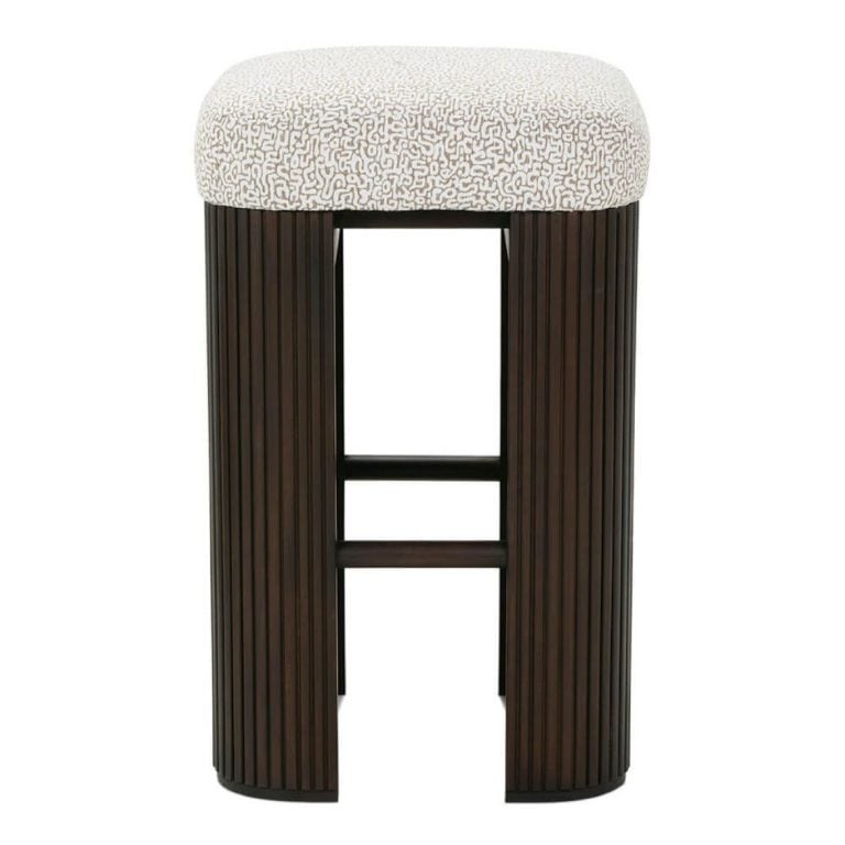 Product Description: Rowe R131-547 Kindred Counter Stool No Back - Godiva - Elevate your space with the sophisticated charm of the Kindred Counter Stool, where classic reeded detailing meets contemporary comfort. The meticulously crafted vertical fluting along its architectural base creates a mesmerizing rhythm of light and shadow, while the plush upholstered seat offers an inviting perch for extended gatherings. Available in both rich Godiva and lighter Sesame finishes, this versatile piece seamlessly transitions from anchoring a modern kitchen island to gracing an elegant home bar, its curved silhouette and thoughtful proportions ensuring both visual appeal and functional comfort. The stool's masterful construction speaks to timeless craftsmanship, with its solid solid mahoganyfoundation and precise detailing creating a statement piece that feels both grounded and sophisticated, ready to become an enduring part of your home's story.