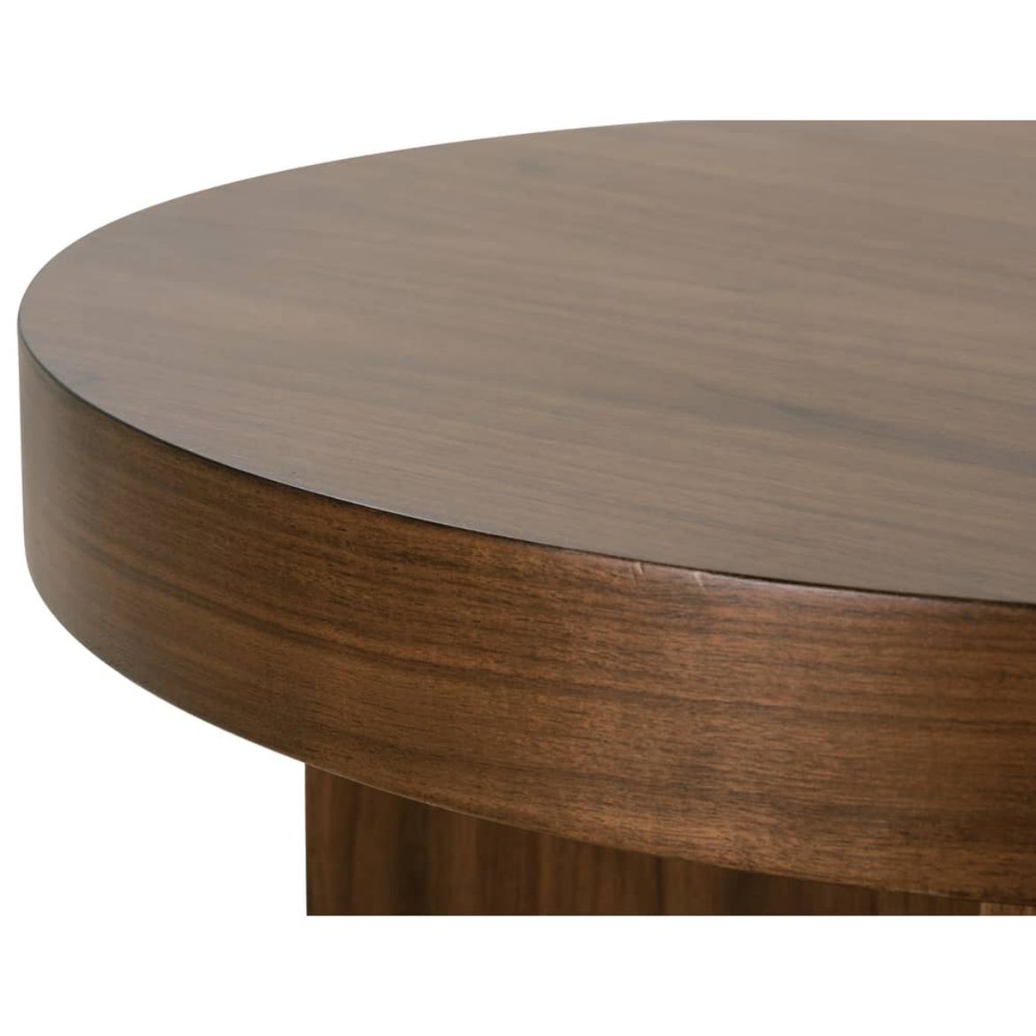 Product Description: Rowe RR-10660-335 Capri Round End Table - The Capri features Cathedral Walnut Veneers in Auburn finish with adjustable floor glides.
