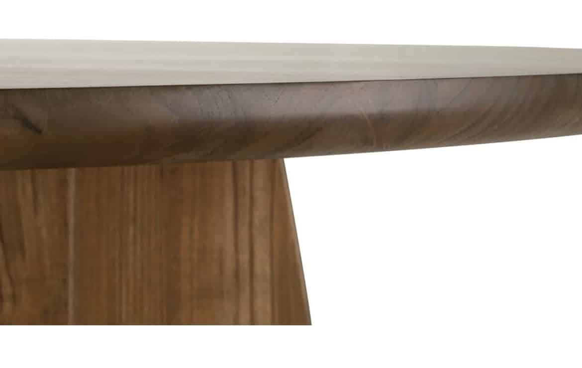 Product Description: Rowe Furniture RR-11000-810 A/B Nova Round Dining Table - The Nova Round Dining Table stands as a testament to thoughtful modern design, where clean architectural lines meet organic warmth. Its substantial solid teak construction showcases nature's artistry through carefully preserved wood grain patterns, each one unique, while a light stain treatment enhances the material's natural character while protecting its surface. The distinctive base design, with its sculptural curved panels, creates an artistic foundation that feels both grounded and graceful, challenging traditional pedestal configurations. This statement piece effortlessly anchors a dining space while maintaining an airy presence, its round shape promoting intimate conversation and easy flow around the room. Perfect for both daily gatherings and elegant entertaining, the Nova's honest materials and masterful craftsmanship represent the pinnacle of contemporary furniture design that will remain relevant and beautiful for generations to come.