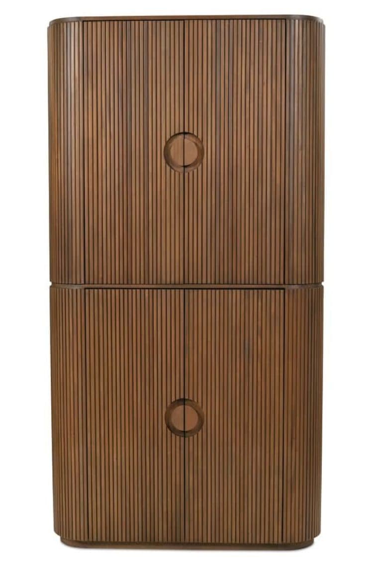 Product Description: Rowe RR-11010-615 Kindred Tall Cabinet - Sesame - Elevate your space with the Kindred Tall Cabinet, a masterpiece of reeded craftsmanship that seamlessly marries form and function. Its rhythmic vertical lines create a mesmerizing surface texture, while the gracefully curved silhouette and sophisticated circular hardware add refined sophistication to any room. Available in both the rich, classic Godiva finish and the lighter, contemporary Sesame tone, this statement piece adapts effortlessly to various design aesthetics, from timeless traditional to organic modern. The cabinet's commanding presence is balanced by its thoughtful proportions and elegant bottom trim, making it an ideal anchor piece for dining rooms, living spaces, or sophisticated home offices. More than just storage, this artfully crafted cabinet serves as a testament to meticulous attention to detail, offering both visual intrigue and practical functionality that will enhance your interior landscape for years to come.
