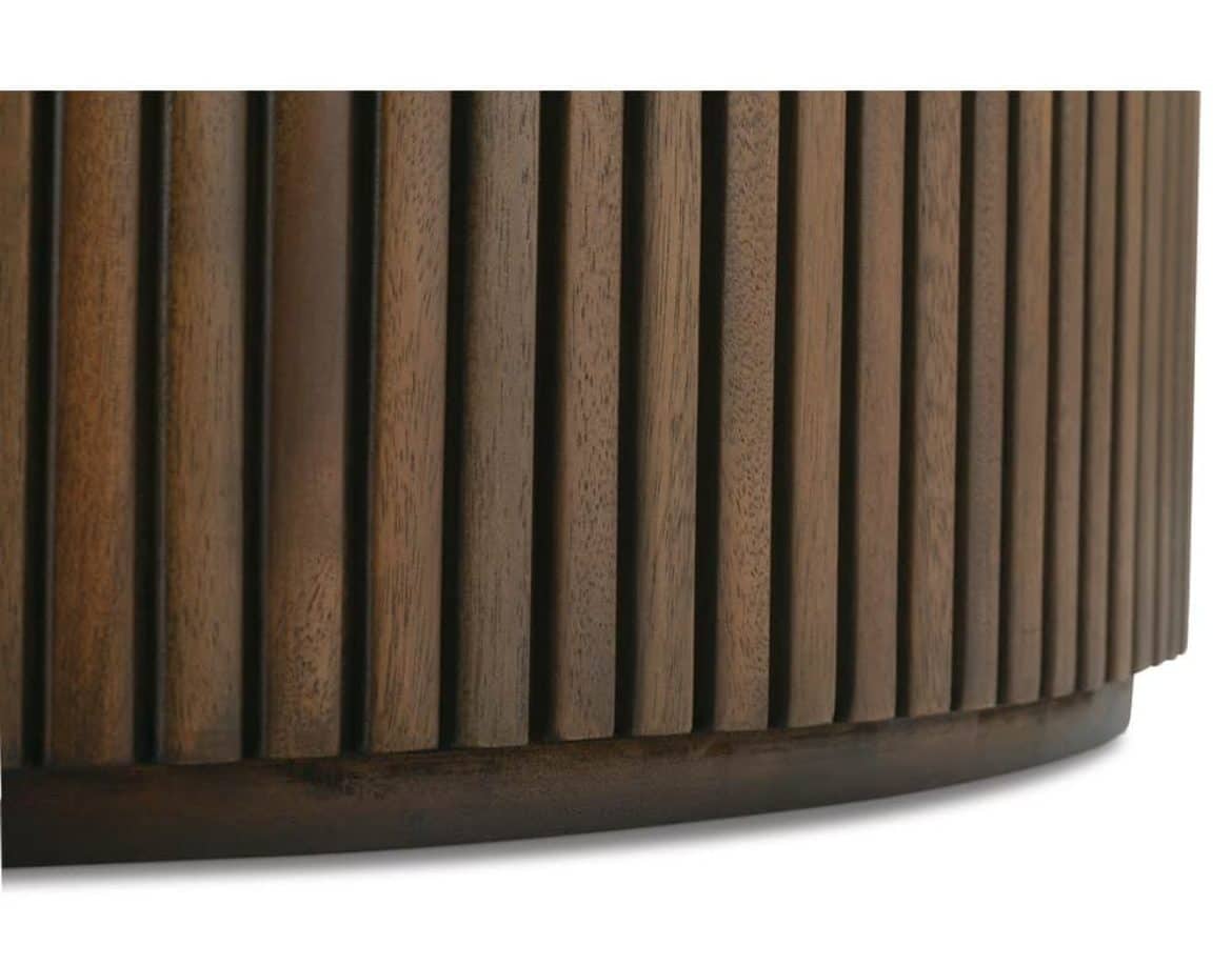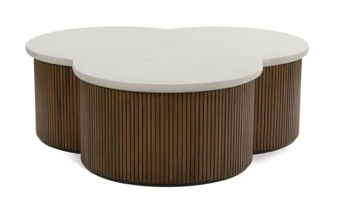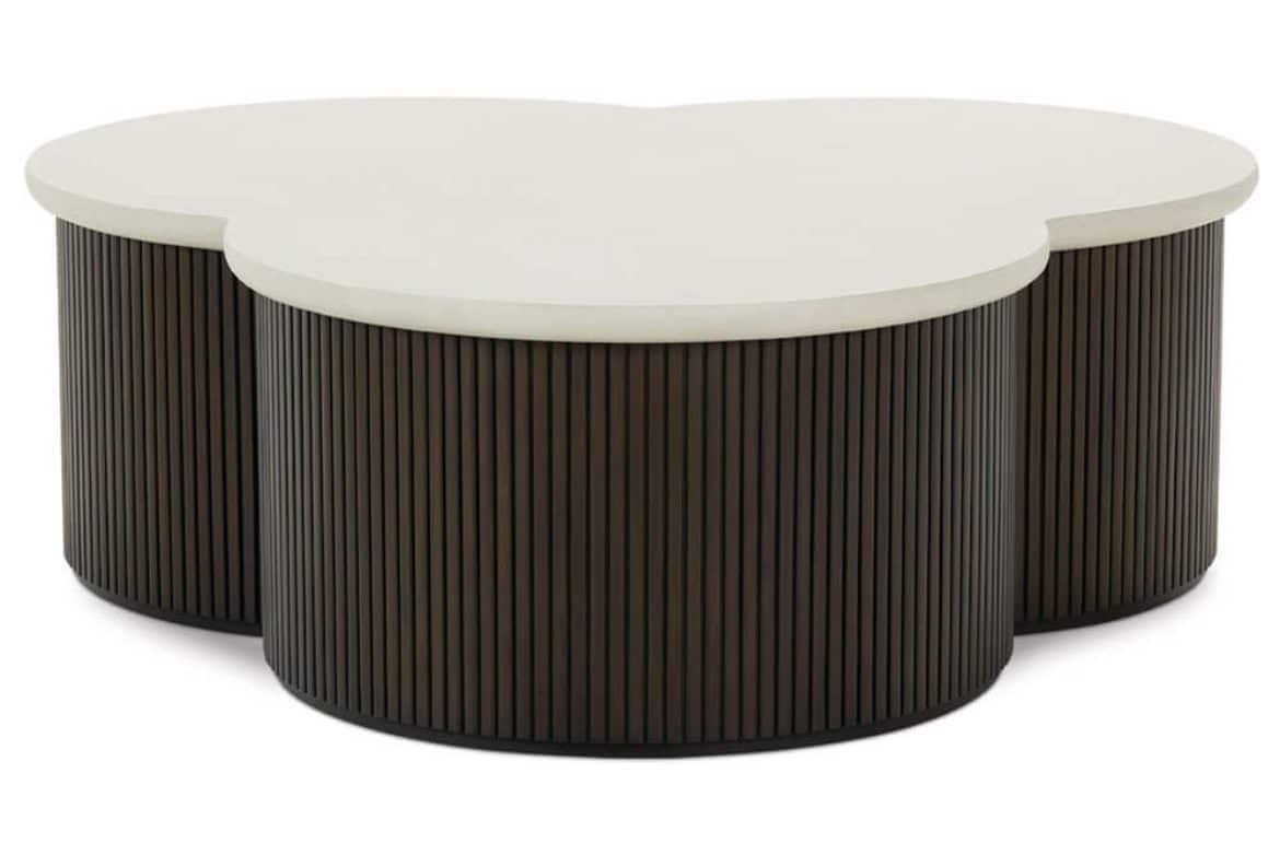 Product Description: Rowe RR-11011-320 Kindred Fossil Cocktail Table - The Kindred cocktail table masterfully balances organic curves with architectural precision, featuring a striking cloud-like silhouette atop a meticulously reeded base that commands attention while maintaining an air of sophisticated restraint. Available in rich Godiva or light Sesame finishes, its rhythmic vertical detailing wraps seamlessly around the drum-style base, creating a mesmerizing interplay of light and shadow that adds depth and visual intrigue to any living space. The clean-lined mineral top appears to float above the sculptural base, offering both visual lightness and practical functionality for everyday use, while the table's versatile transitional design makes it equally at home in both classically-inspired and contemporary settings. This statement piece doesn't just serve as a functional surface‚ acts as a sophisticated anchor that elevates the entire room's design narrative, proving that thoughtful craftsmanship and artistic vision can coexist in perfect harmony.