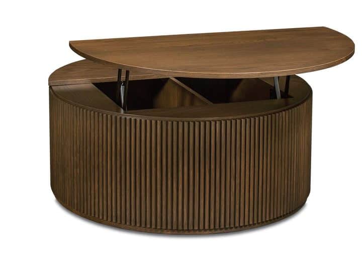 Product Description: Simply Amish LOARR-23C3 Aria 48" Coffee Table - Coffee table made from solid wood with a warm walnut finish. Features a round top and a lower shelf for storage or display. Perfect for living rooms or family rooms. Size: 48 inches in diameter by 18 inches high.