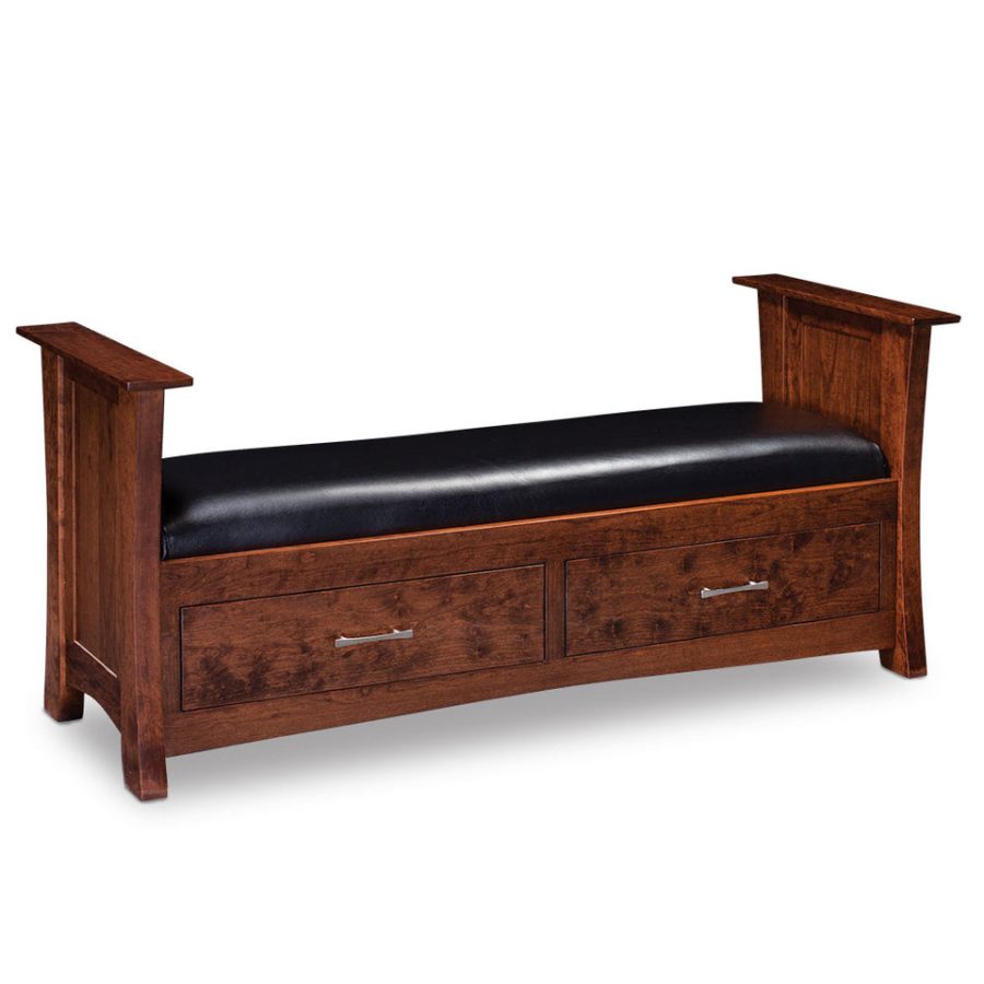 Simply Amish SCLFT-01C2-L Loft 2-Drawer Santa Fe Bench w/ Leather Cushion Seat