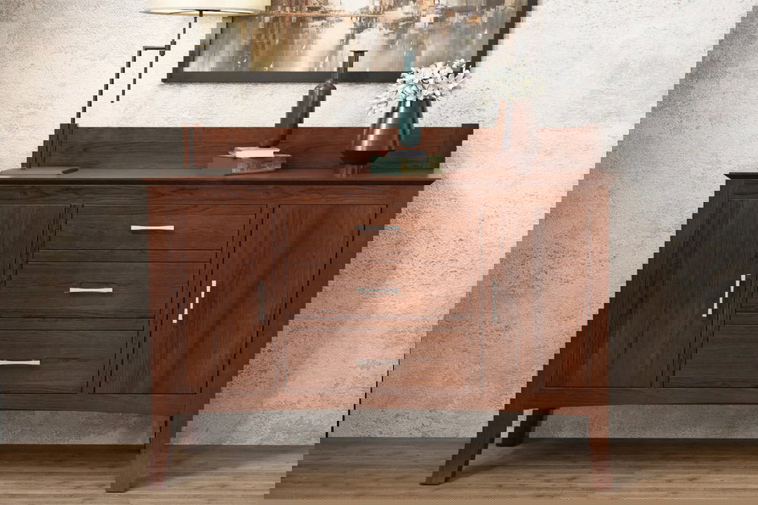 Simply Amish TSLII60SB Loft II Sideboard – Features two adjustable shelves on each side