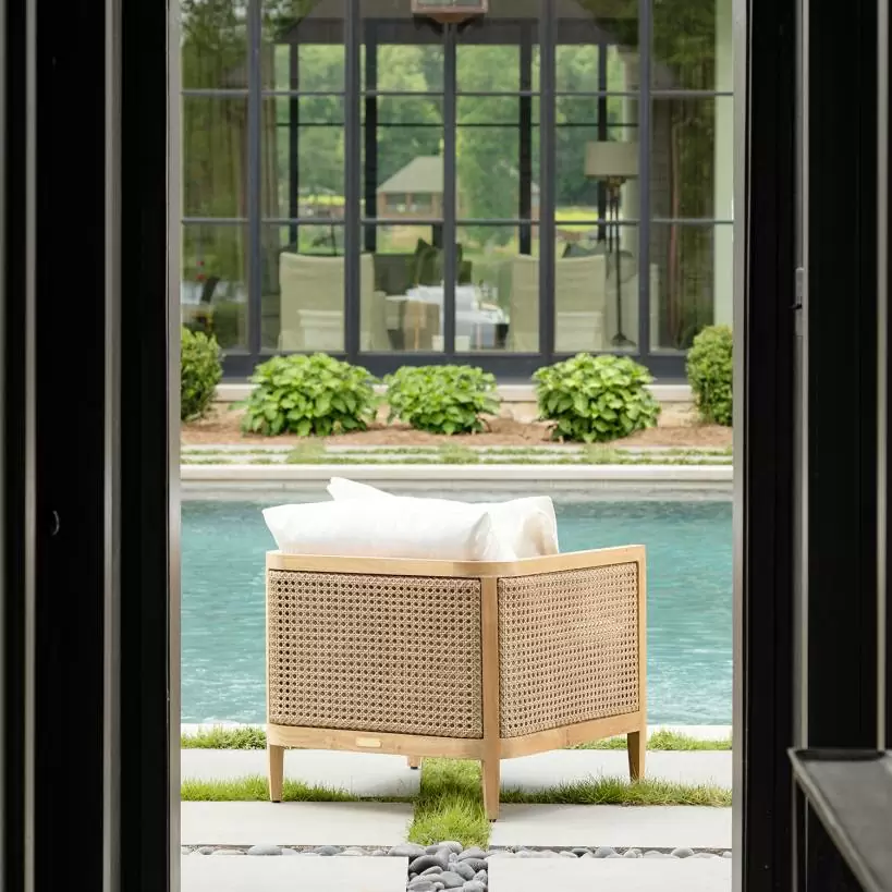 The Playa Collection presents a serene blend of contemporary lines and natural elegance. Featuring warm wood tones and intricately woven details, each piece offers a tranquil, beach-inspired retreat. The refined weave pattern, reminiscent of traditional rattan, is crafted from our N-Dura resin wicker, hand-woven to offer a classic finish to this more contemporary design, while the sustainably harvested natural teak showcases our commitment to quality, sustainability, and enduring value.