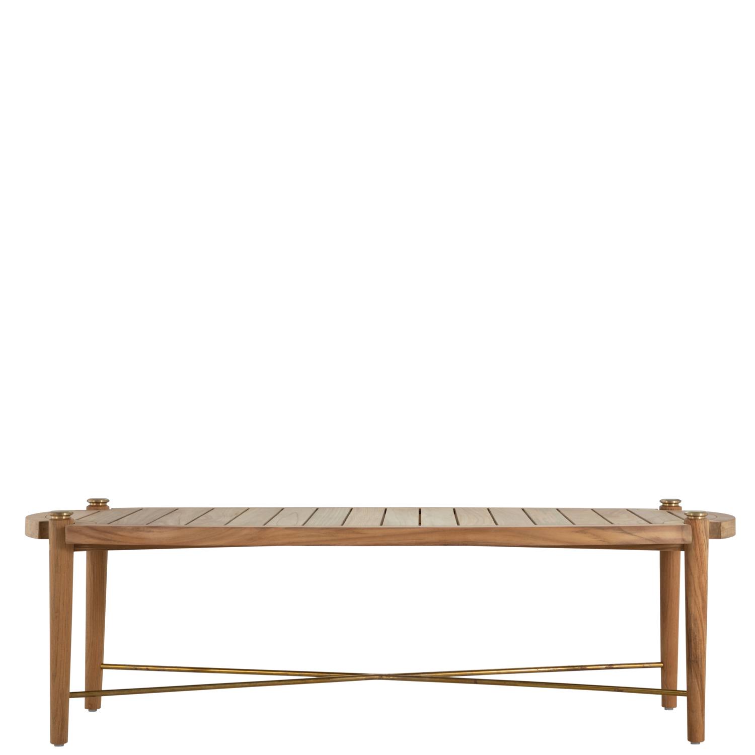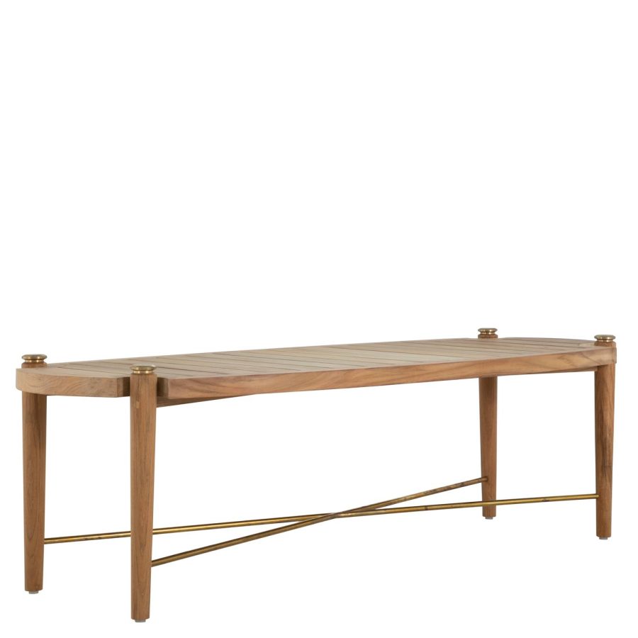 Product Description: Summer Classics 1452 Pacifica Coffee Table Rectangular - The Pacifica Rectangular Coffee Table enriches outdoor spaces by exemplifying the unmatched elegance and durability of some of the world's finest teak. The unfinished brass accents on the leg extensions add a touch of sophistication, designed to beautifully patina over time, enhancing the tables' aesthetic appeal with a lived-in, vintage charm. The tabletops are thoughtfully slated, promoting efficient water drainage and making them perfectly suited for outdoor environments. Please note, that due to its high-quality center cut, and natural oils, teak will age gracefully without the help of cleaners and protectors.