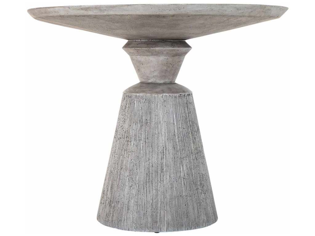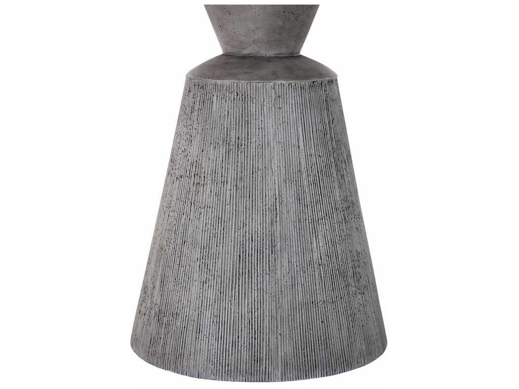 Product Description: Summer Classics 1749 Fisher Dining Table - The Fisher Dining Table pairs curves and angles for an artful outdoor dining experience. Fashioned to give the appearance of cast stone, the table is a faux stone construction that enables the piece to be easily repositioned. Sturdy enough to withstand natural elements, the table features a cone-shape base textured with a vertical stria design. The 36' round tabletop offers lots of space for dining-outdoors or inside. Natural Stonecast finish.