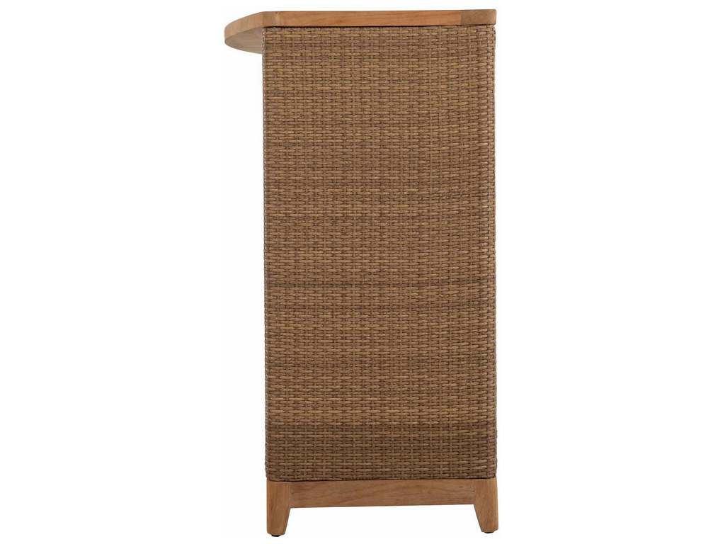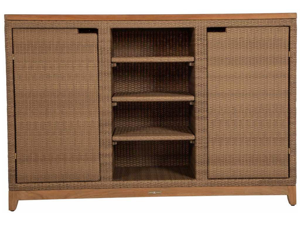 Product Description: Summer Classics 2910 Chesapeake Buffet Storage Table - Summer Classics expands its line of beautiful, multifunctional outdoor furniture with the Chesapeake Buffet Storage Table that will coordinate with a variety of outdoor furnishings. Crafted from woven raffia and accented with natural teak, this table is designed to withstand natural elements for years of enjoyment. Multiple shelves and closed cabinet storage make this piece a must-have for entertaining family and friends in relaxed, laid-back style.