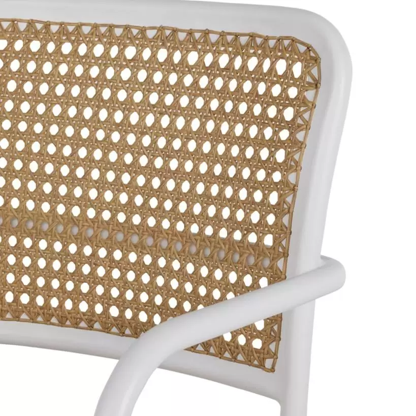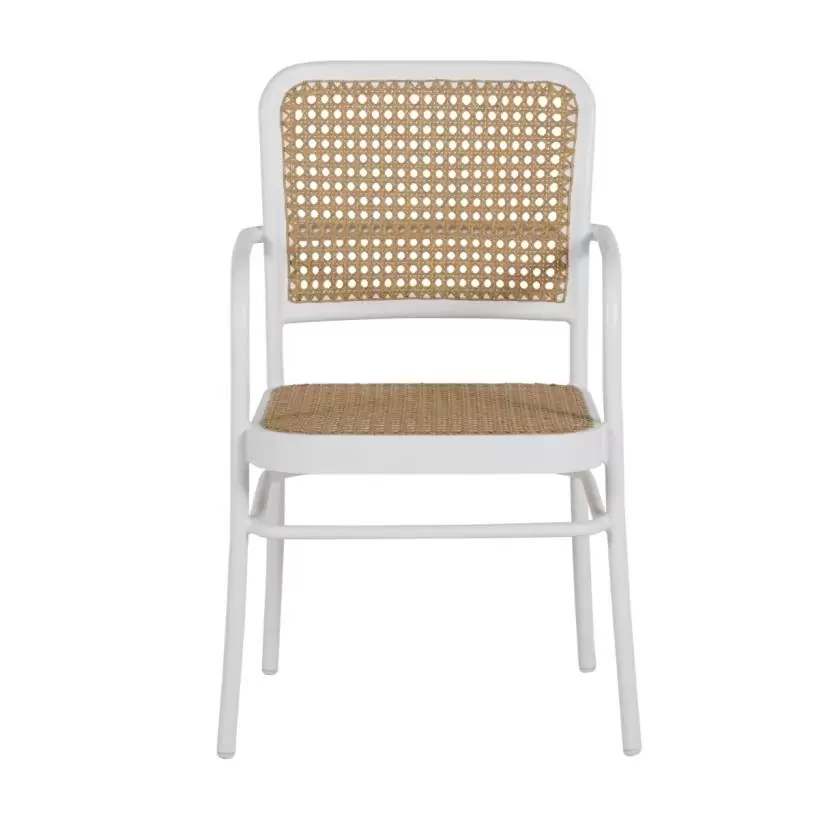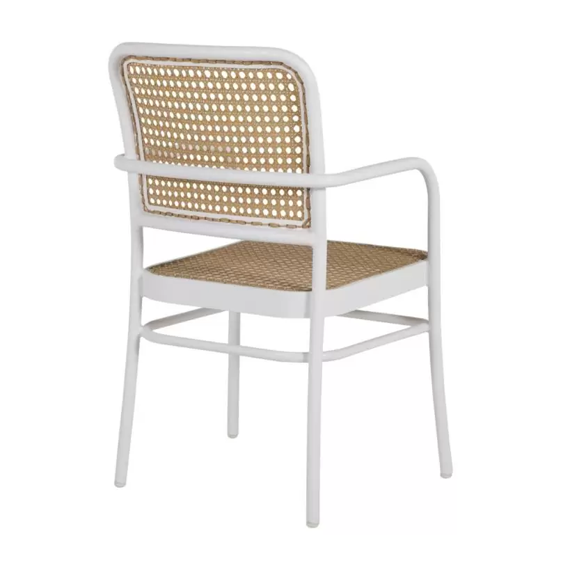 Product Description: Summer Classics 3313 Bordeaux Arm Chair - With all the charm of a French bistro chair, the simple lines of the Bordeaux Arm Chair make it an easy choice at a dining table or as extra seating. The back and seat feature an exceptionally durable resin wicker woven to mimic natural cane webbing. The wrought aluminum frame is reinforced at all stress points for exceptional strength and has a powder-coated finish that is ten times thicker than wet-coat paint. Chalk/Natural Cane finish.