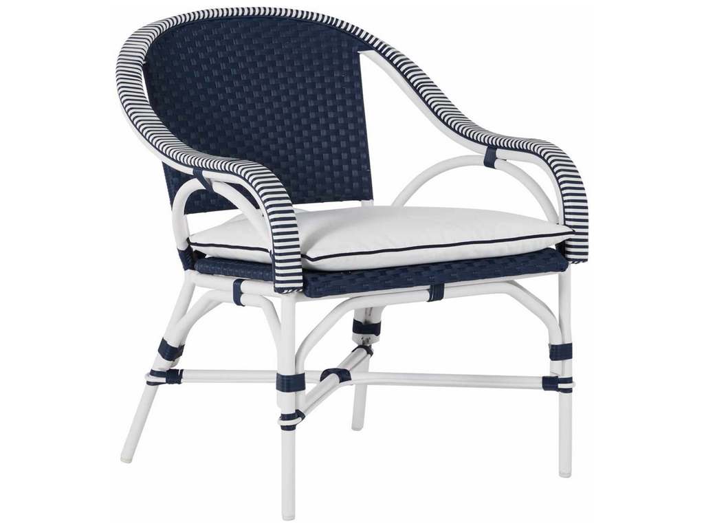 Seemingly transported from a French sidewalk café, this charming seating has a fresh look with a White and Navy or White and Natural two-tone weave and Chalk-finish aluminum frame. Deep-seating styling provides comfort without a cushion, and the chair's design makes it ideal for small spaces. Easy care and sturdy styling mean years of worry-free enjoyment