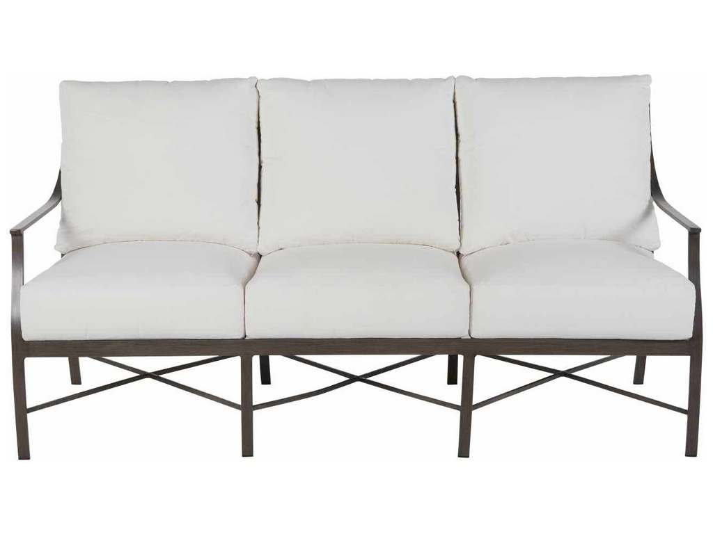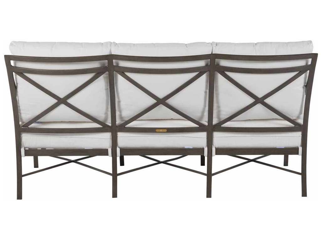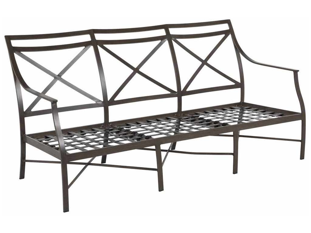 Product Description: Summer Classics 3426 Monaco Aluminum Sofa - In the Monaco collection, slim, elegant silhouettes combine with gracious details. Crafted of enduring wrought aluminum, the Monaco Aluminum Sofa's refined accents, including sloping arms and the signature X-frame design, create a timeless statement.