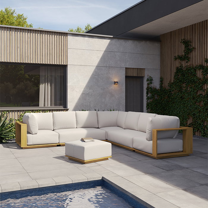 Product Description: Tropitone 1F2417SO Arlo Ottoman - "Step into indulgence with our premium Arlo Ottoman, a symbol of outdoor furniture craftsmanship at its finest. Constructed from premium teak wood, each ottoman embodies durability and elegance. This collection is skillfully designed for optimal comfort and flexibility. Adorned with plush, thick cushions available in an array of hues and designs, you can customize your seating to mirror your unique preferences and flair. The teak wood frames not only enhance visual appeal but also withstand harsh weather conditions, guaranteeing enduring beauty and functionality. "