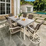 Product Description: Tropitone 961770WS Shoreline High Back Swivel Rocker - Inspired by the graceful curves of the beach, the Shoreline Woven High Back Swivel Rocker boasts graceful arms and a sturdy well-crafted aluminum frame with a gracious woven seat and back. The ergonomically designed high back of the dining chair adds another level of comfort to any outdoor dining experience. These stylish outdoor chairs will have guests rocking in relaxation. Pair this classic outdoor patio chair with a Tropitone® Dining Table for your own private seaside escape.