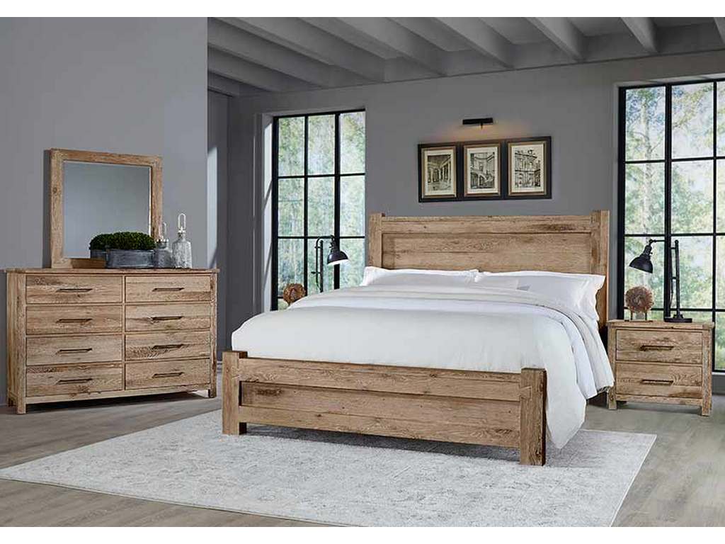 The Dovetail Collection's dominant design feature is the dovetail, a wood joinery technique dating back thousands of years which is displayed prominently near the top of each bed post, front top rim of each case piece, and all four corners of each mirror. This collection is designed for those who appreciate a natural reclaimed wood look. The splits, cracks, knots, and bold grain pattern is achieved through Accelerate the Aging Process technique. Until now only Mother Nature could make wood look this good